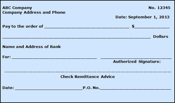 Sometimes it is useful to send a check with an attached Remittance Advice, which indicates for what purpose the check is issued. This is also illustrated below. |