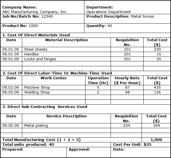 The labor- or machine-time spent on a particular job is obtained from Production Timecards, which should be completed by employees on a daily basis.