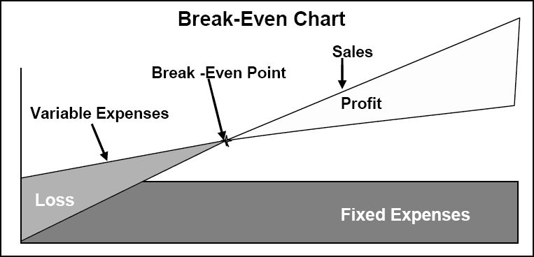 These questions lead directly into Break-Even Analysis, which represents a useful management evaluation tool and it entails consideration of several financial variables, as outlined below. The break-even analysis can be also presented in a visual manner by using a Break-Even Chart illustrated below. |