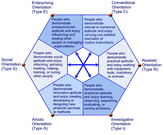 Most people usually fall into two or more Personal Orientation Types. Engineers, for example, may have realistic and investigative orientations, while many managers have investigative and enterprising orientations.