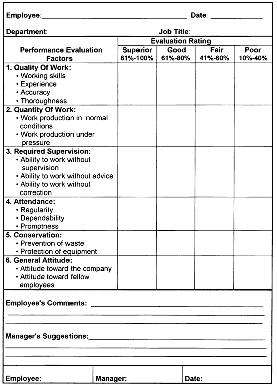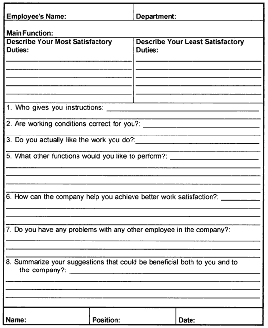 It may also be useful to issue an Employee Confidential Questionnaire to selected employees to obtain their opinions on relevant work-related issues. This action may enhance the clarity of performance appraisal results. A typical Employee Confidential Questionnaire used by small or medium-sized companies is presented below. |