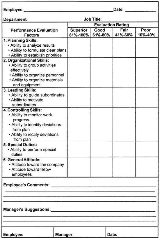 Management's Performance Appraisal in small and medium-sized companies may be conducted in a similar manner by applying different performance factors illustrated below. |