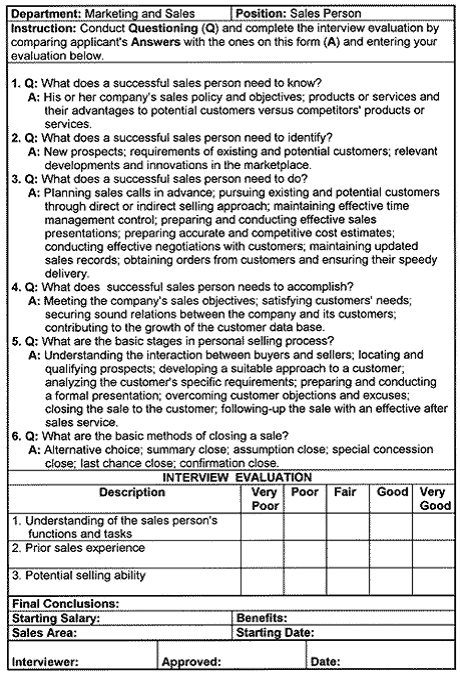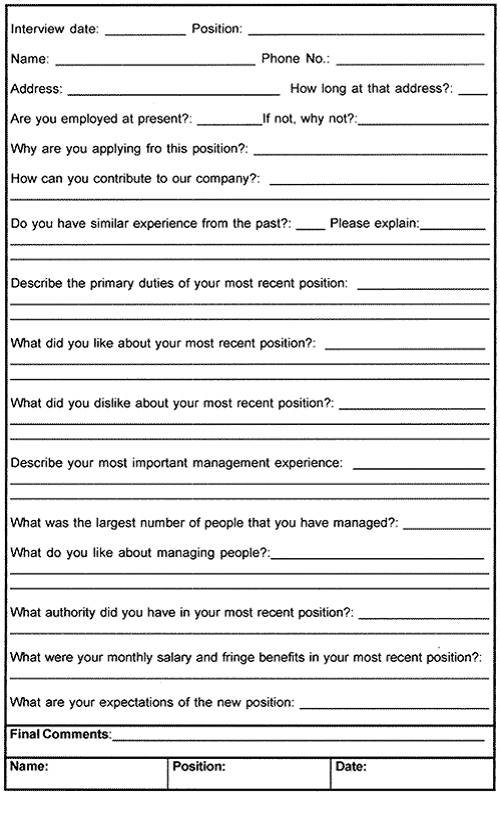 The patterned interview questions are provided in a set of Patterned Interview Forms that are designed for various positions such as managerial, clerical, technical, or sales. A typical Patterned Interview Form for a small or medium-sized company is presented next. (11) |