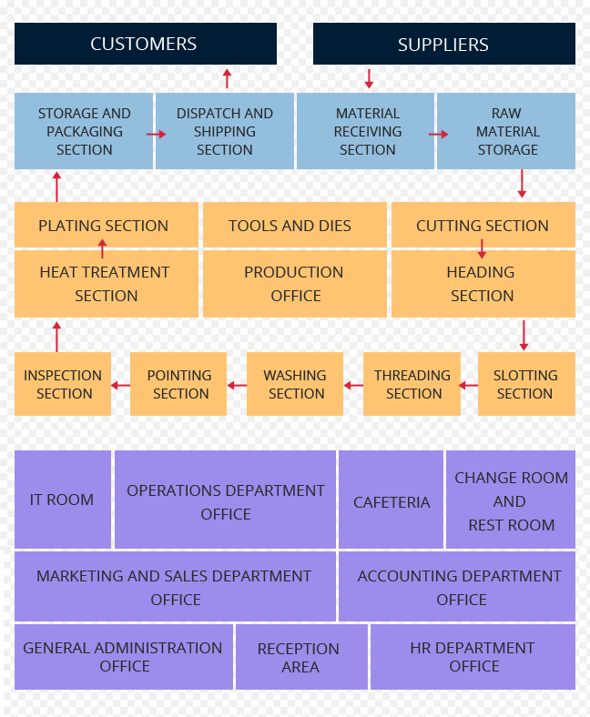 Raw materials and work-in-process travel minimal distances between work stations, thus minimizing the non-productive cost and reducing the final product cost. |