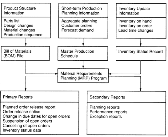 All information must be fed into the MRP System continuously and accurately to ensure effective production performance. The MRP system, in turn, will process such information and determine Net Requirements and Order Release Dates for every material and component required for current manufacturing needs.