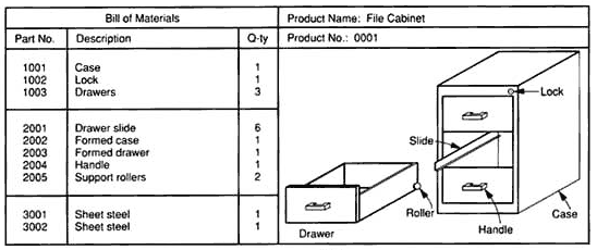 The Bill Of Materials File provides information about the type, quantity, and lead time of all materials and components required for any finished product. |
