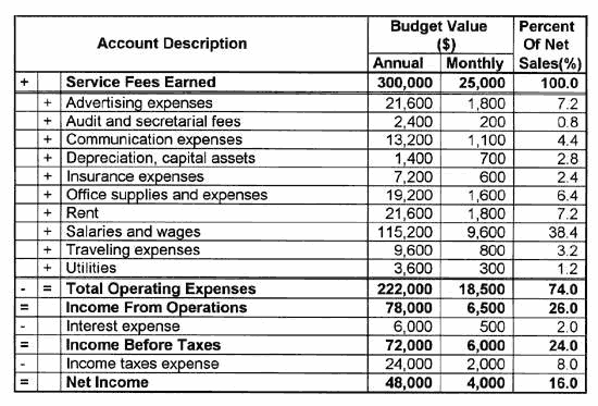 A BUDGETED INCOME STATEMENT FOR A SERVICE COMPANY |