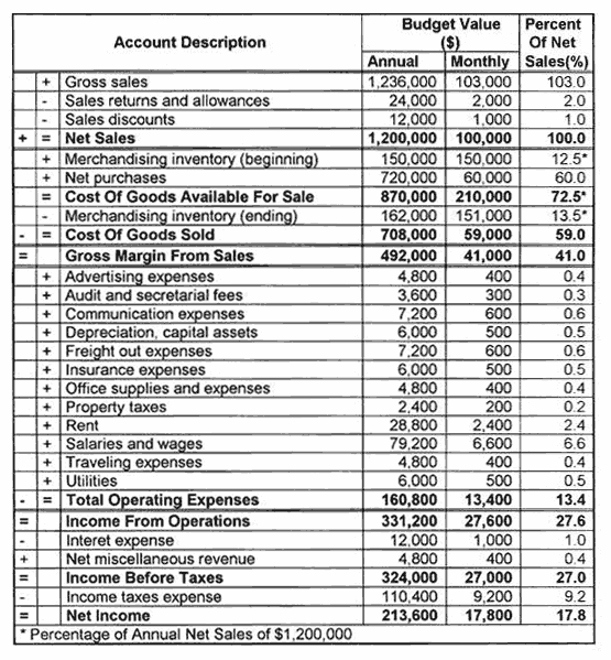 BUDGETED INCOME STATEMENT FOR A MERCHANDISING COMPANY |