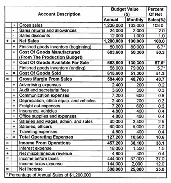 A typical Budgeted Income Statement for a manufacturing company is presented below. |