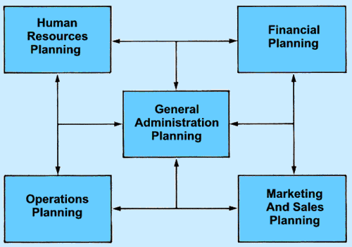 Operational planning activities in small and medium-sized companies normally include five areas of business management illustrated below. |