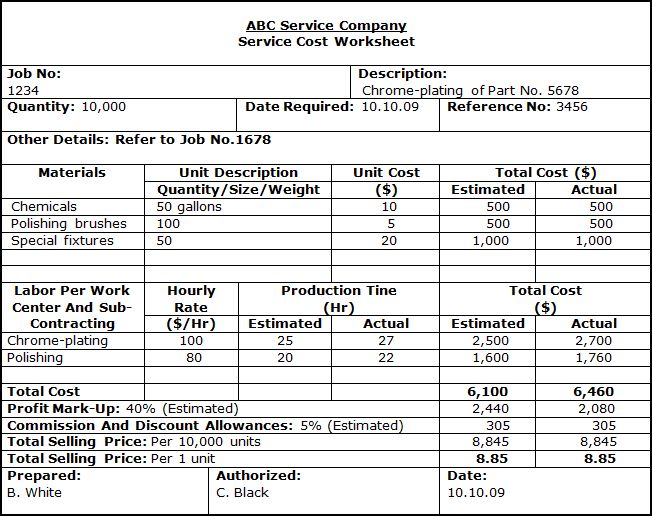 In order to determine the actual cost of a particular job, be it a product or a service, it is necessary to record all individual costs in the Operations Cost Worksheet.