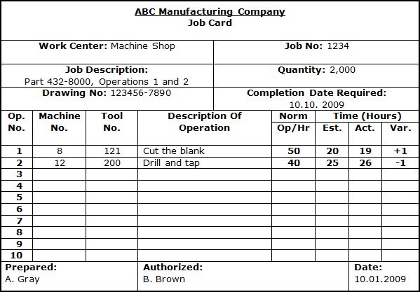 The Scheduling Of Work In A Job Shop Or A Batch Production Environment entails summarizing individual manufacturing requirements into a Job Card. An individual Job Number must be allocated to every assignment handled in the job shop and a job card prepared accordingly.