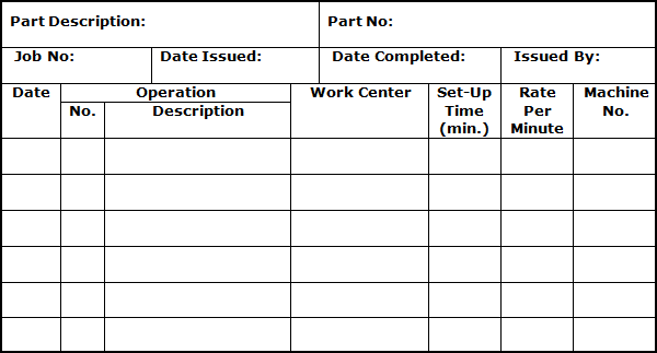 All operational instructions pertaining to a specific manufacturing process may be summarized in a Route Sheet. This document is particularly useful for production scheduling and for control of manufacturing activities that are discussed later.