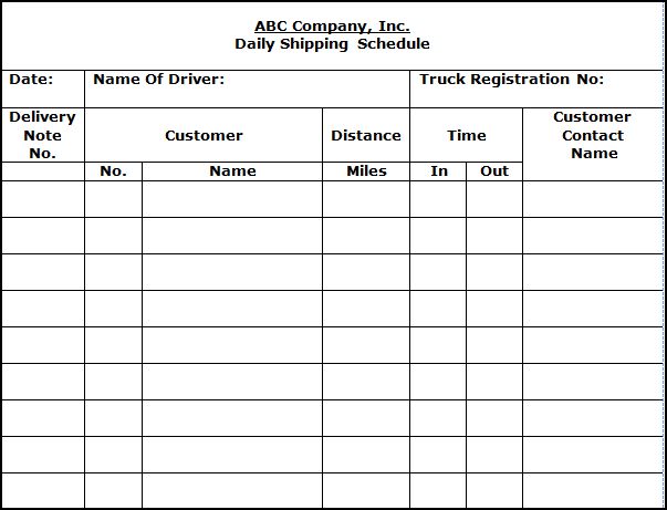 An integral element of the materials dispatch procedure is preparation of a Daily Shipping Schedule. The prime purpose of this schedule is to summarize details of daily deliveries and to maintain control in the dispatch section. A typical Daily Shipping Schedule is presented below. |