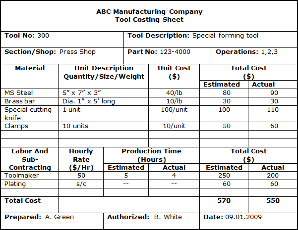 • How to estimate the cost of a tool and complete a tool costing sheet.